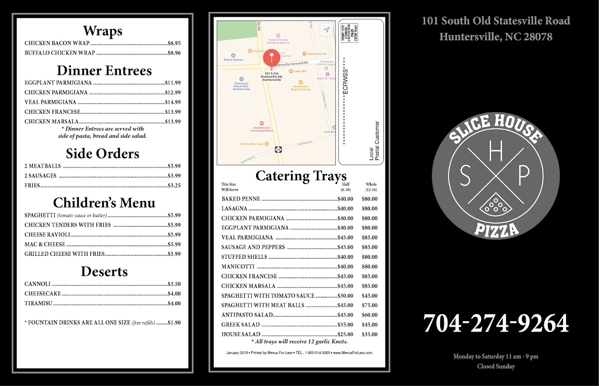 Welcome to Slice House Pizza, a haven for pizza lovers located in Huntersville, NC. Our menu is a delightful fusion of classics and unique options, ensuring there's something for everyone. The highlight, of course, is our Supreme slice, praised for its crispy, airy crust that is both soft and chewy.